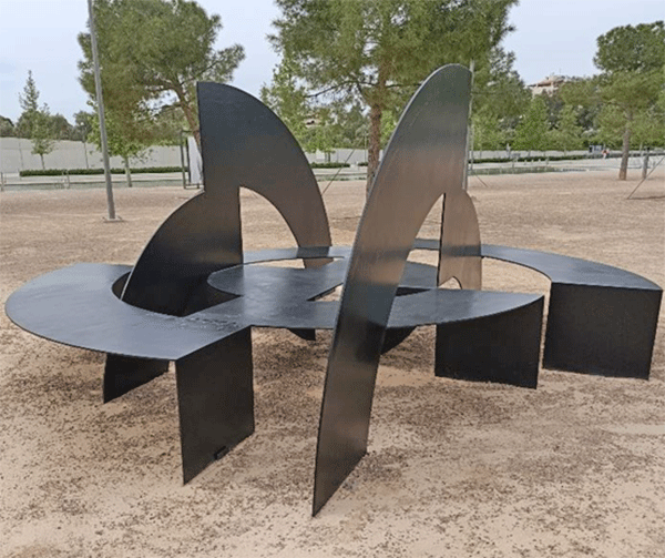 Aleks Milonas, "Razvoj kruga", lakirani metal, 195x407x407 cm