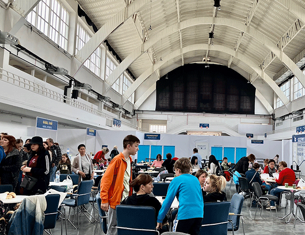U hali 2 gradskog sajma, pretvorenu u centar organizacije Karitas za prihvat izbeglih iz Ukrajine, imam zakazan sastanak sa Marijom Kšjaskevic.