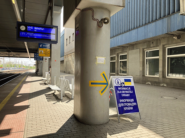 Posle ovog razgovora krenula sam za Poznanj u centar za prijem izbeglica. Na ulicama primećujem vidljivo istaknute ćirlične natpise na ukrajinskom kao na primer: “Mi smo sa vama svim srcem”.