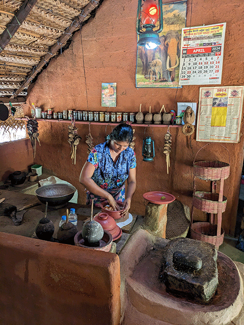 Tokom boravka u selu Sigirija imali smo priliku da gostujemo u jednom lokalnom domaćinstvu. U znak dobrodošlice domaćica udara u bubanj prilikom dočeka. Svi hodaju bosi u kući i okolo. Dozvolila nam je da učestvujemo u pripremanju ručka. Jela se kuvaju u glinenim ćupovima. Uvek pripremaju veći broj jela od povrća i bilja, mesa ili ribe konzumiraju manje. Hleb minimalno, nalik na tortilju ali mnogo manjeg obima. Ovde smo naučili kako da se iskoriste svi delovi kokosa, najpre kokos koji postoji i u našim radnjama, sa izuzetno tvrdom korom, od koga se pravi kokosovo brašno, od vlakana kokosove kore prave se kanapi i konopci, a preostali otpad se koristi kao kompost za bašte. Drugi je kraljevski kokos koji se uglavnom poslužuje kao dobrodošlica turistima, zbog egzotičnog soka. On je znatno mekše kore, žute boje je, od ove vrste se pravi kokosovo ulje.