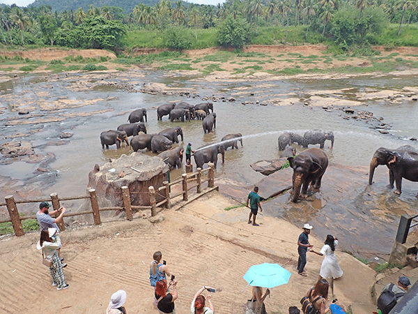 Pinavela - sirotište slonova je prva lokacija koju smo posetili. Ovo sirotište je osnovala vlada 70 - ih godina, sa idejom da se organizuje briga o malim slonovima koji se izgube ili ostanu sami u divljini. Na tom prostoru ima oko 70 jedinki slonova koji su tu dovedeni kad su tek rođeni ili su bili sasvim mali. Oni su sada već odrasli. Među njima je i jedna slonica sa blizancima. Domaćini sa ponosom pokazuju male sloniće i naglašavaju da je to prvi put posle 100 godina da su se rodili blizanci slona na Šri Lanki. U neposrednoj blizini ovog sirotišta, nalazi se očuvana i funkcionalna manufaktura - mala fabrika koja proizvodi papir od slonovih izmeta. Obzirom da se slonovi hrane biljem, izmet sadrži značajnu količinu vlakana koja se tokom tehnoloških procedura izoluju i nastaju tabaci papaira. U manjoj radionici, u sklopu radnje, od tih papira prave se notesi, sveske i drugi suveniri koje prodaju turistima.
